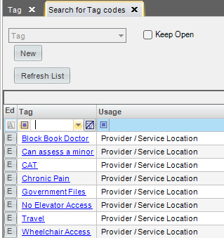 You can edit any of these by clicking on the E button in line with the tag or create new ones by using the New button at the bottom of the screen.