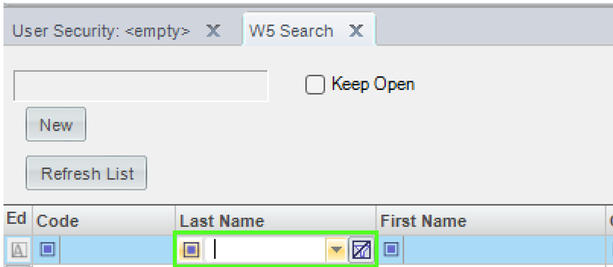 3. Search for and select the user Code needing document access changes in the Document Library.
