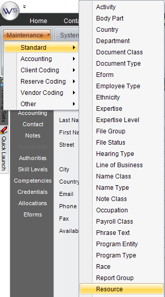 1. Click on the Admin tab > Maintenance > Standard > Resource.